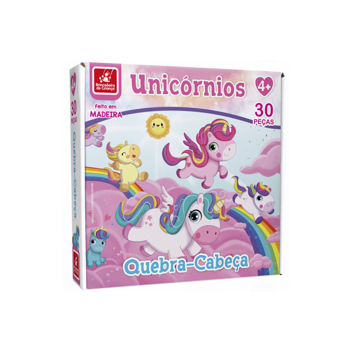 Acima das nuvens, há um lindo mundo mágico habitado por unicórnios. Com esse lindo quebra-cabeça de 30 peças, você encaixa as peças uma a uma até formar uma linda e colorida imagem.